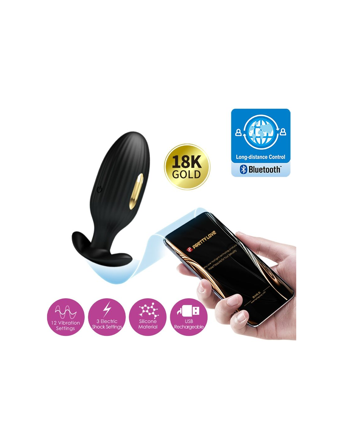 PRETTY LOVE BOTTOMEste magnífico plug anal es ideal para ambos sexos y perfecto para un uso prolongado. A diferencia de muchos juguetes de estimulación eléctrica, este enchufe cuenta con puntos de conexión de 90 grados, que le permiten usarlo en una posición sentada. Este sencillo rediseño abre una gran cantidad de posiciones de juego para que usted explore. Intente descender gradualmente sobre el Punta cónica y balanceo hacia adelante y hacia atrás una vez insertado para experimentar con diferentes estimulación. Active su paquete de energía e-stim para disfrutar de oleadas de placer pulsante que van desde suaves golpes hasta sacudidas y envían sus receptores de placer a un frenesí lleno de diversión. Unte generosamente lubricante para disfrutar de la mejor experiencia anal. Con este juguete puedes descargar aplicaciones gratuitas y desbloquear funciones nuevas y emocionantes, mientras usas tu teléfono como control remoto inalámbrico para este juguete.