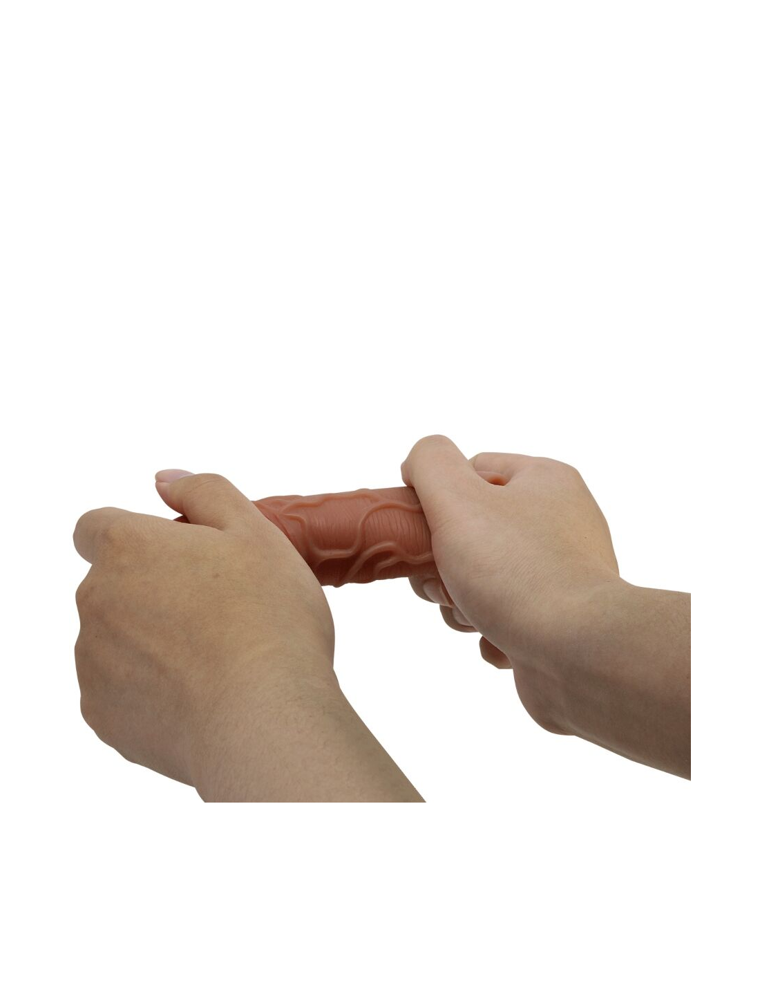 Esta funda elástica agrega longitud, circunferencia y textura y se adapta a la mayoría de los tamaños de pene.