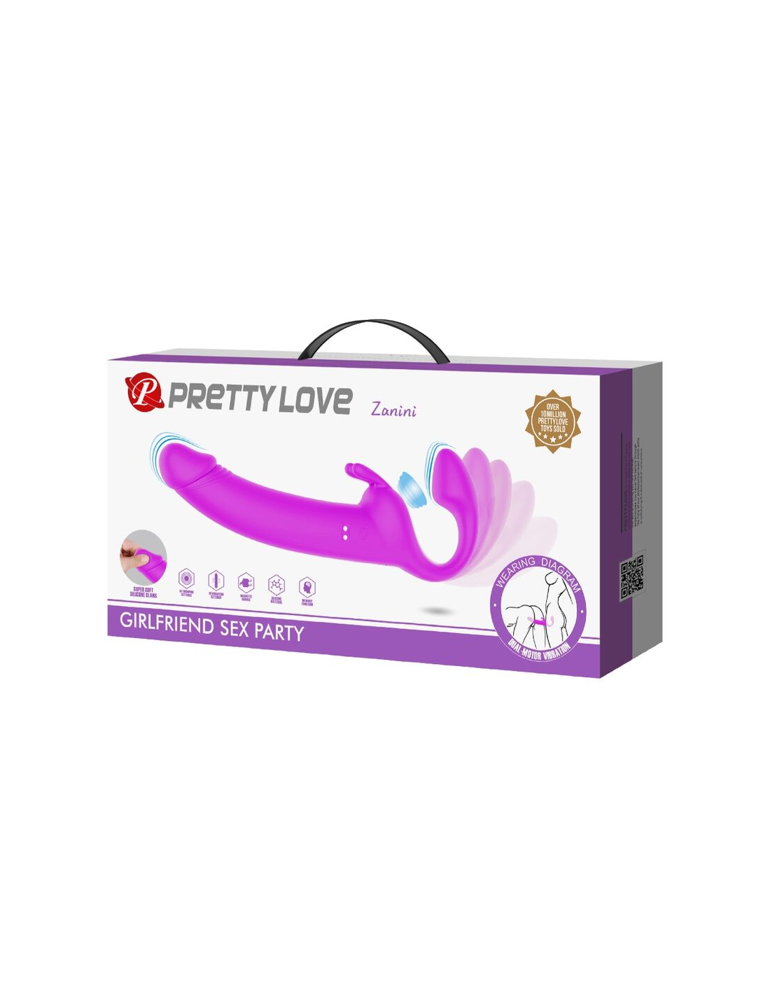 PRETTY LOVE - ZANINI DILDO STRAP-ON SIN ARNÉS 10 VIBRACIONES MORADO