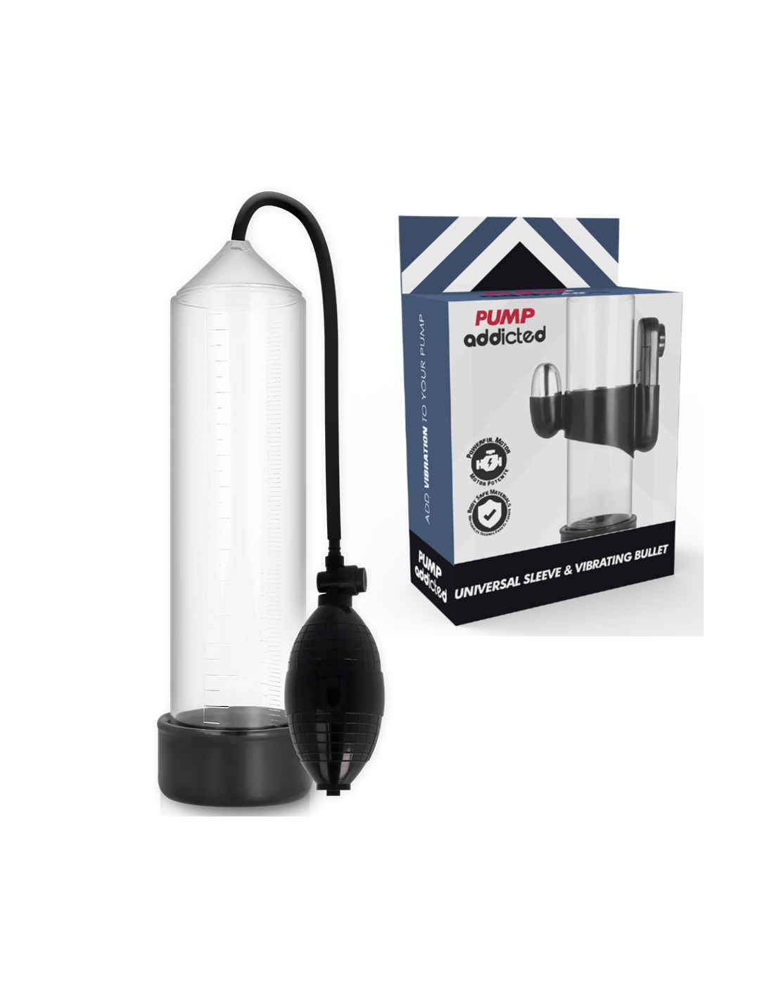 Pump Addicted ayuda a alcanzar la erección de una forma más sencilla utilizando un sistema de vacío que hace que la sangre se concentre en el pene cuando todavía está flácido. La erección se alcanza y mantiene mediante un sellado cómodo y hermético en la base del cuerpo, justo en la unión del pene con el pubis, gracias al cual se mantiene la sangre en el tronco. Gracias a la manga, el sellado es firme, cómodo y estrecho sin apretar.