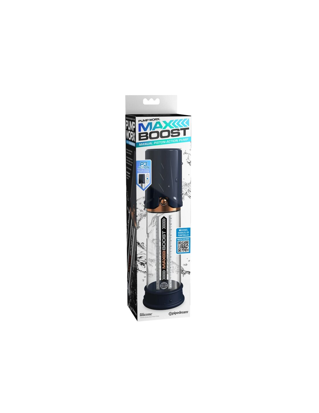 - Diseño exclusivo de acción manual de pistón: el diseño sin motor hace que Max Boost sea perfecto para usar en el baño o la ducha. Para una experiencia mejorada, intente llenar el tubo con agua antes de bombear.