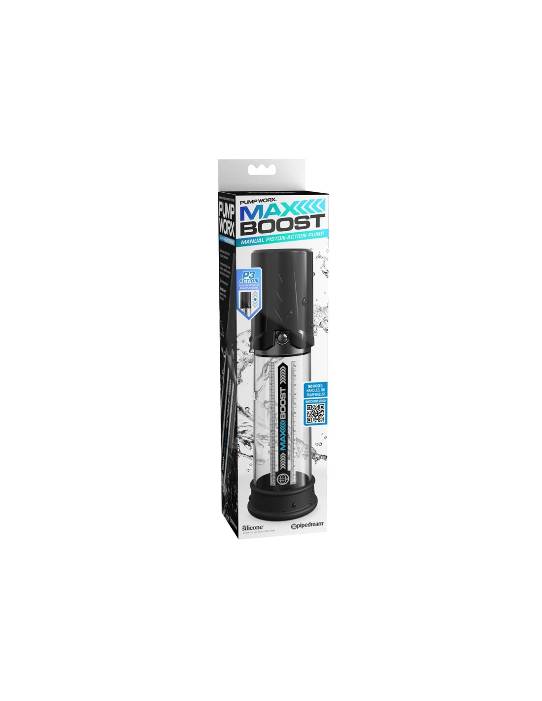 - Diseño exclusivo de acción manual de pistón: el diseño sin motor hace que Max Boost sea perfecto para usar en el baño o la ducha. Para una experiencia mejorada, intente llenar el tubo con agua antes de bombear.