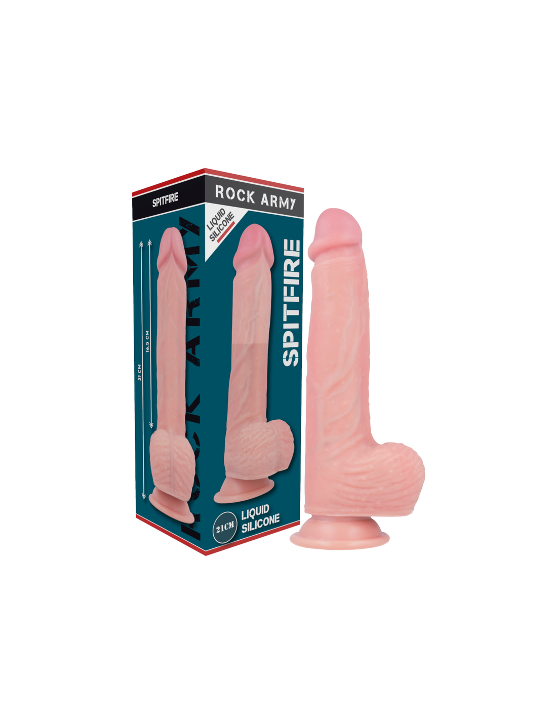 ROCKARMY - ARNÉS + LIQUID SILICONE DILDO PREMIUM SPITFIRE 21 CM -O- 4.62 CM
