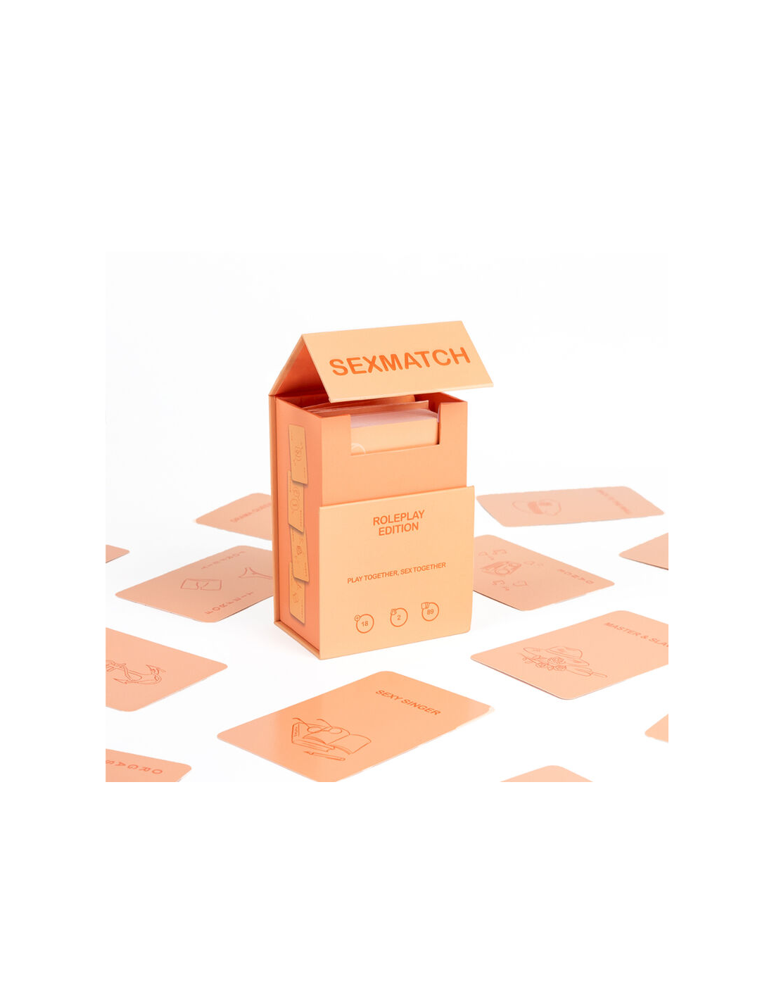 SECRETPLAY 100% GAMESSexmatch Roleplay Edition es el juego de cartas para parejas en el que debes hacer coincidir ilustraciones y palabras realizando desafíos hasta que uno de los dos se quede sin cartas. El juego contiene 89 cartas de juego (81 cartas y 8 comodines) y 1 carta guía.