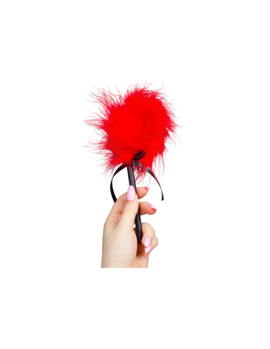 Deja que un cosquilleo recorra todo tu cuerpo con este delicado plumero de marabú rojo.