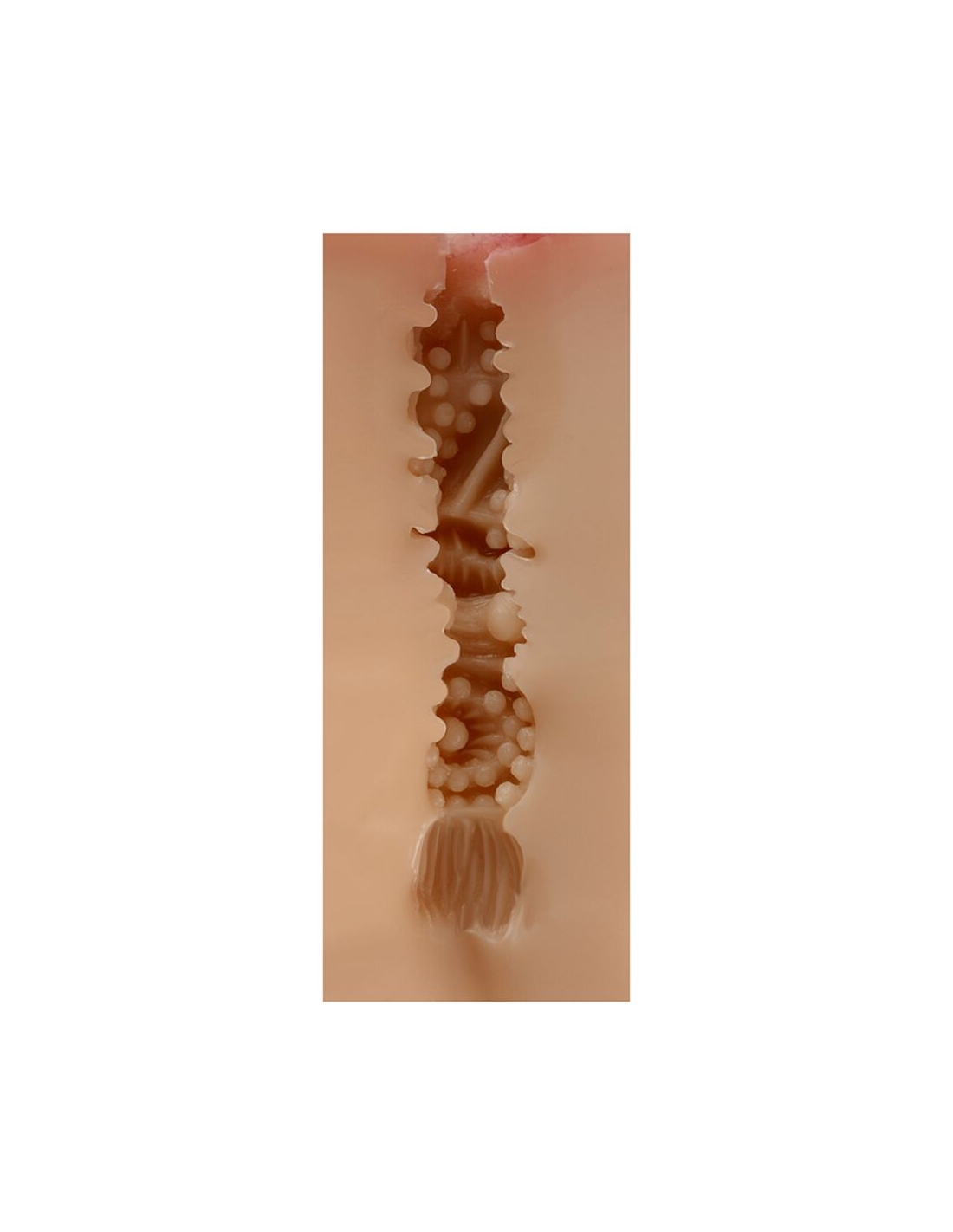 - Textura interna ultrasensorial: El canal interno está diseñado con diferentes texturas, como estrías, nódulos y puntos de presión, que aumentan la fricción y la estimulación en cada movimiento. Dependiendo del modelo, algunas versiones cuentan con cámaras de succión que intensifican la sensación de succión natural.