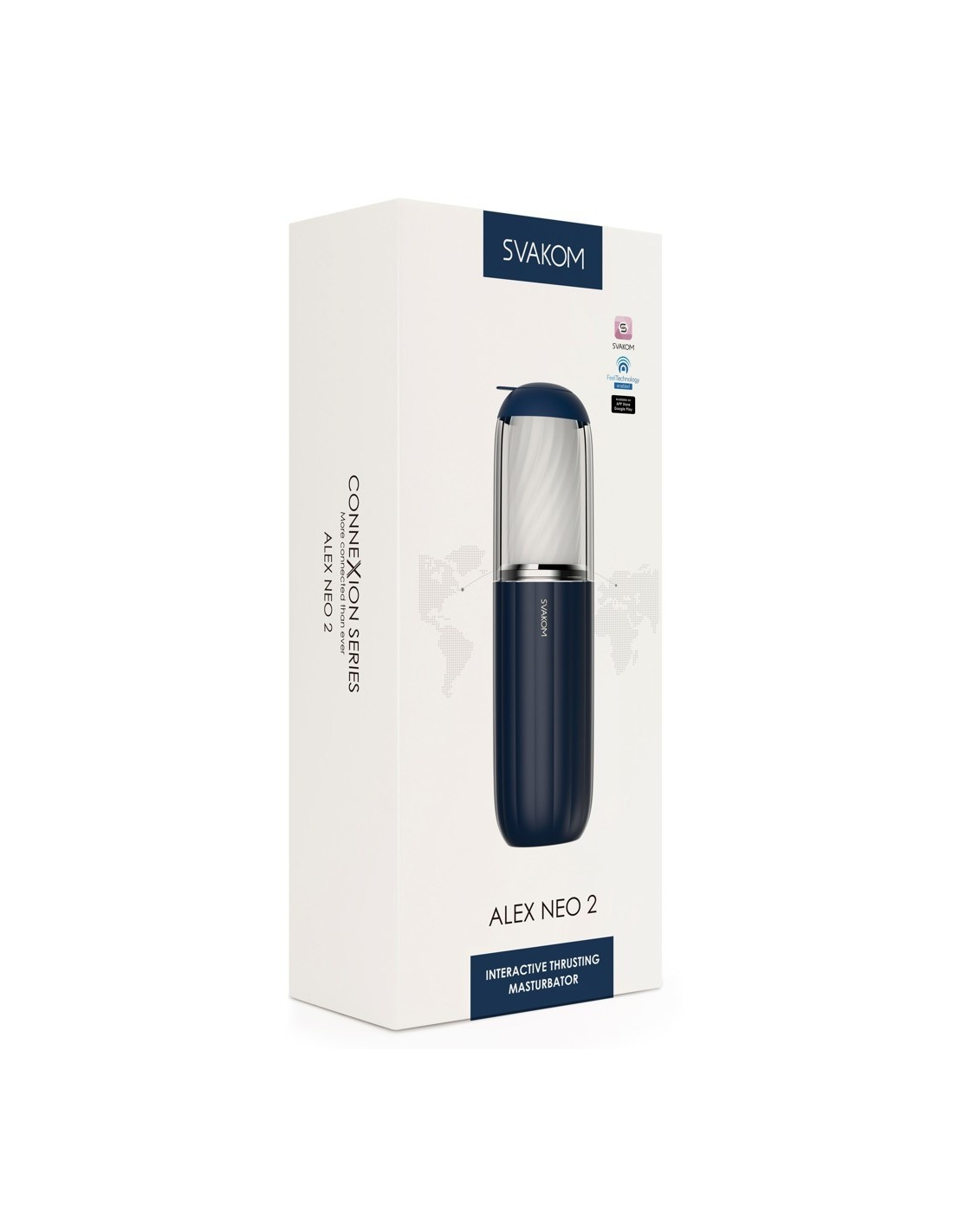 SVAKOMEl masturbador Alex Neo 2 de la serie Connexion de SVAKOM ofrece una experiencia de placer mejorada con capacidades interactivas, 7 modos de empuje, fácil manejo y diseño ergonómico.