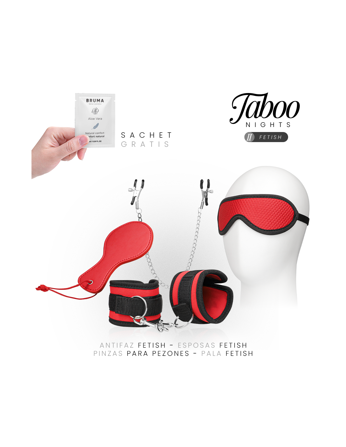 TABOO NIGHTS – 2: FETISH reúne los elementos esenciales para disfrutar de juegos de dominación suave, exploración sensorial y placer compartido en un solo pack.
