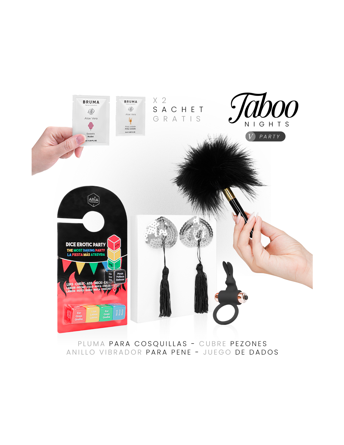 TABOO NIGHTS – 5: PARTY es un pack pensado para romper la rutina y convertir cualquier encuentro en una experiencia divertida, provocadora y llena de complicidad. Combina juego, estimulación y placer compartido, ideal para parejas que buscan un ambiente desenfadado y atrevido.