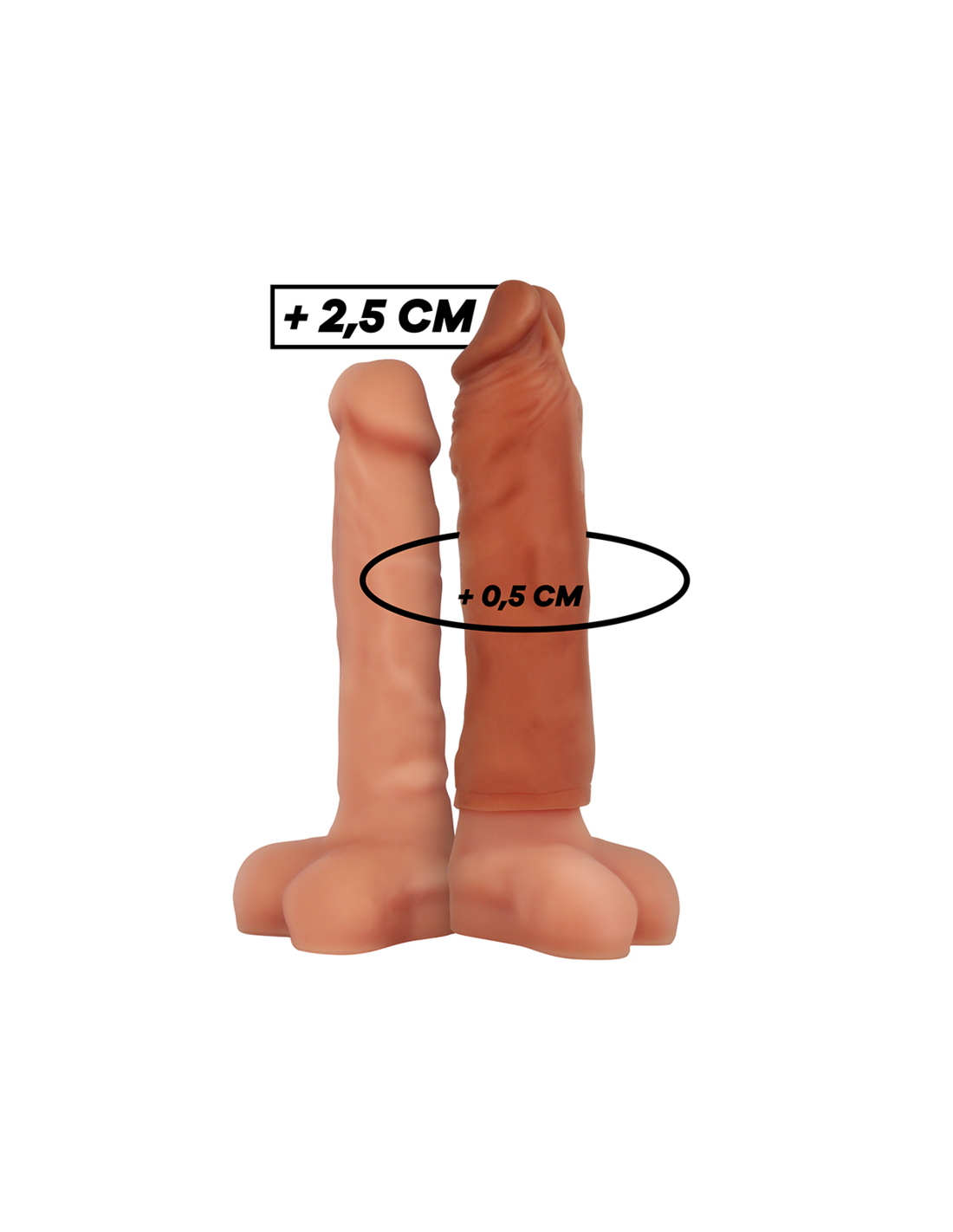 ¡Desliza la manga sobre tu erección y satisface todos sus deseos con tu nuevo tamaño aún más grueso! El material súper suave fabricado 100% en silicona médica, queda como una segunda piel o incluso mejor!