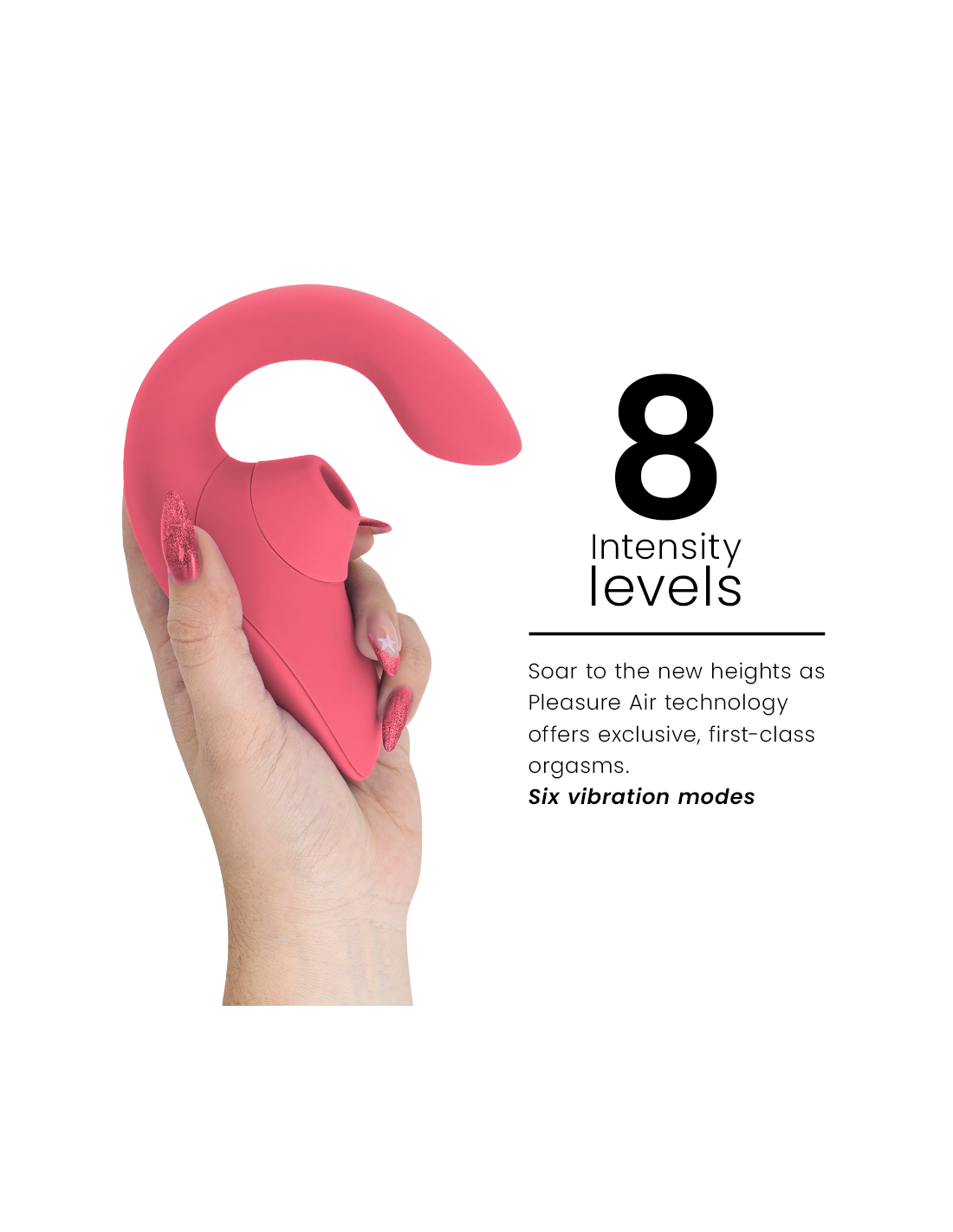 8 niveles de intensidad - Ya sea que prefieras un placer suave y delicado, potente e intenso, o algo intermedio, tu próximo orgasmo está a solo pulsar un botón. Los niveles de intensidad están perfectamente equilibrados y ofrecen la configuración perfecta para cada estado de ánimo.
