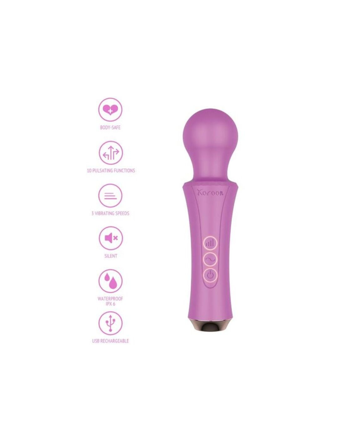 XOCOONConoce a tu nuevo mejor amigo: la varita personal de XOCOON. Esta varita recargable tiene una espectacular vibración fuerte, profunda y retumbante, pero casi sin vibraciones en el mango para una máxima comodidad. Elige entre 3 velocidades diferentes y 10 patrones de vibración y disfruta de un gran masaje por todo tu cuerpo.